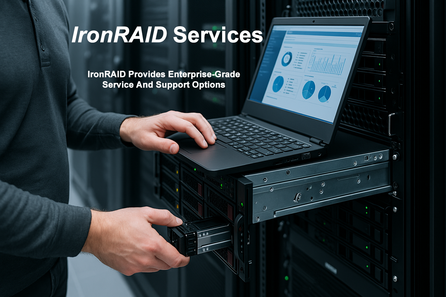 IronRAID Services IronRAID ServicesIronRAID offers a full range of services to help you plan, deploy, and support enterprise-grade RAID storage solutions. From initial design to long-term maintenance, our team delivers the expertise and responsiveness your mission-critical systems demand. RAID System Design & ConsultationWe work closely with IT departments, system integrators, and end-users to design custom RAID systems optimized for your environment. Whether you're building a new storage cluster or expanding existing infrastructure, we tailor everything—from RAID levels to airflow management—to your application. Pre-Configuration & Staging