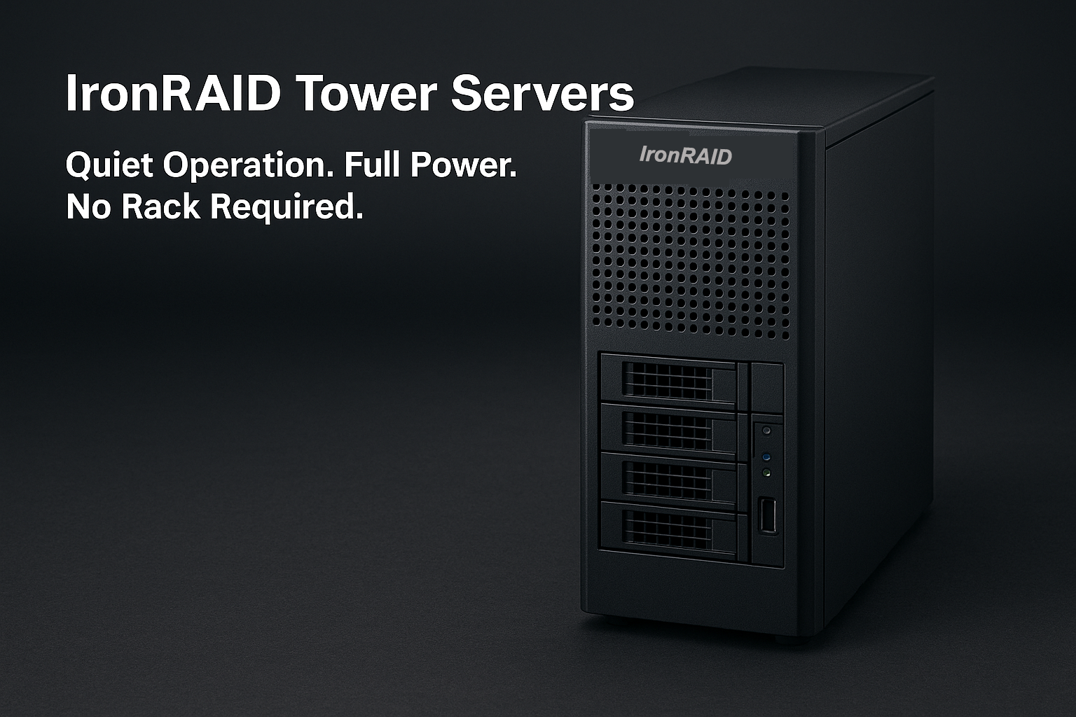 IronRAID Tower Servers IronRAID Tower ServersQuiet Operation. Full Power. No Rack Required. IronRAID Tower Servers deliver enterprise-grade performance in a clean, vertical chassis—ideal for offices, labs, and remote sites where rackmount systems aren't practical. Designed for users who need serious storage and compute power without the need for a dedicated server rack.